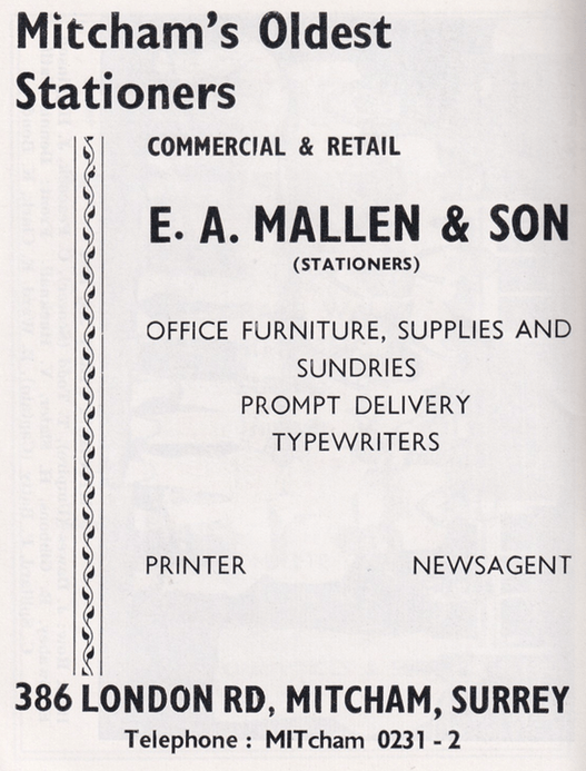 Mallen E.A. & Son, office suppliers, 386 London Road, Mitcham, telephone 01-648 0231