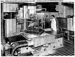 Oerlikon four axis CNC controlled machining centre HM3 – machining end plates for CERN laminating magnets.