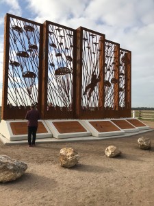 Next we went by coach to an Airborne Monument which had been renovated in 1994. This is a clever design as it incorporates parts from the airborne landings and paratroop drops, such as hooks and containers, see below.