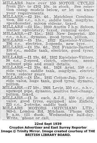 22nd September 1939 ad from Croydon Advertiser