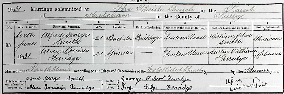 Mr, D. Stopher, Mr. C. Stopher (brothers); Mr. D. W. Stopher and family; Mr. L. Stopher and family; May Catherine and Auntie; Ron, Frank and Reg (On Active Service): Mr. and Mrs. Sleeman. Aunt Lucy; Percy, Maggie, and Girls of Long Stanton Farm, Cambridge; Arthur, Beatrice and Florrie, of Mitcham. Doris, Eddy and Roy, of Bury St. Edmunds; Mother and Ruth, May and Sid, of Chatteris and Histon, Cambridge; Arthur and Maggie of Shepith; Miss Cooke, Mrs. Thompson, Mr. Adams, Mr. Woods, Mr. Sparrowhawk. Mr. Sullings, Mr, Attlesey, Mr. R. Yixley. Mitcham Butchers. Neighbours of New Close and Bath-road.