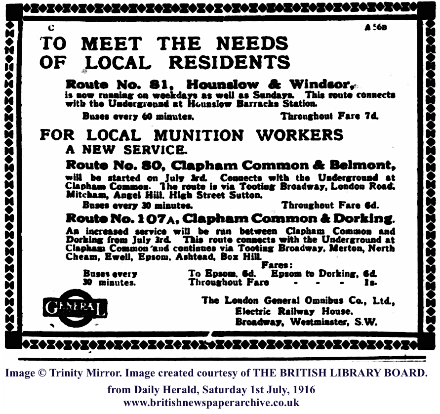 Route No. 107A, Clapham Common & Dorking.