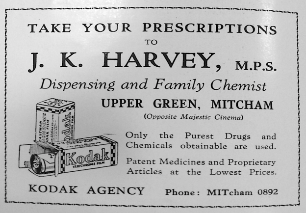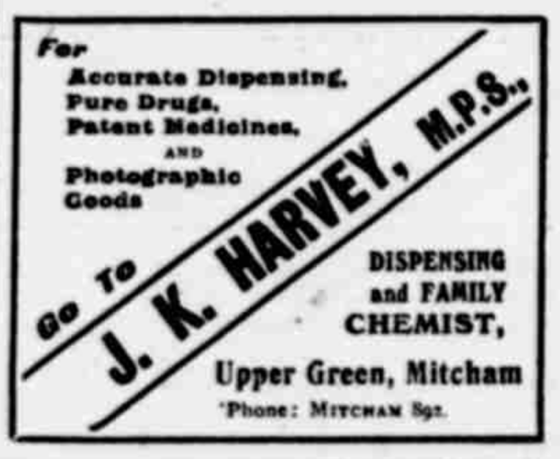 An old-established chemist’s shop at Fair Green, Mitcham, closed at the end of June.