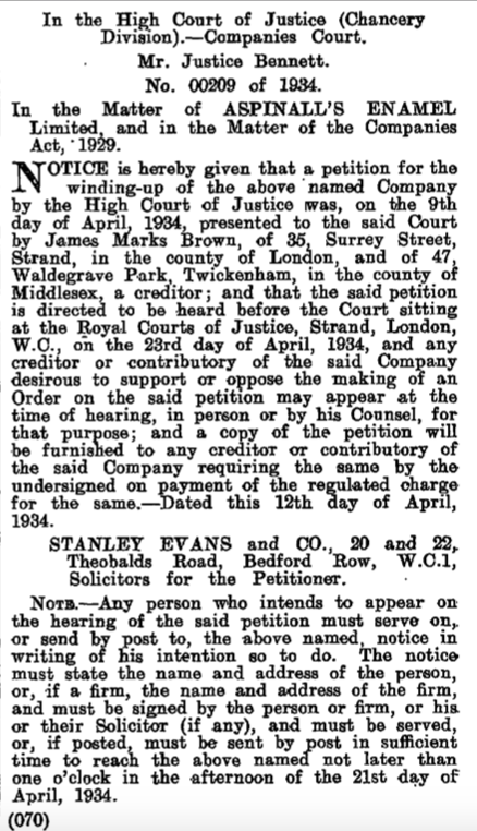 Messrs. Aspinall’s Enamel. Ltd., the pioneers of enamel paint making, have found it necessary to increase their productive capacity, and with that view have purchased an old-established varnish-works, in the Bath Road, Mitcham, where they hope to be able to deal more effectively with the increasing demand for their well-known enamel, varnishes, and other specialities. They are retaining their works and offices at New Cross as their headquarters for business communications.