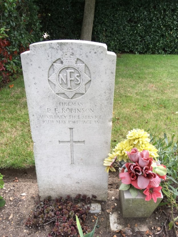 In the Commonwealth War Graves section, plot 14, of this cemetery there are three gravestones for Auxiliary Firemen who died at the Surrey Theatre, on 10th May 1941.