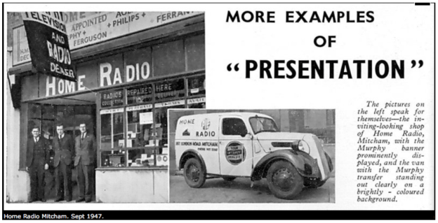 September 1947 – the shop at 187 London Road, and their van. From the in house magazine of Murphy Radio Co., the Murphy News.