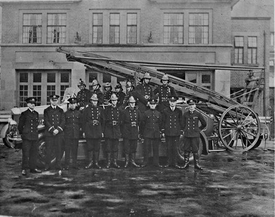 This photo was taken of the Mitcham Fire Brigade, in the 1930s in front of the Fire Station at Lower Green West. It was posted onto the Facebook Mitcham History Group, where the names were supplied, and permission has been given to reproduce it here.
