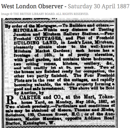 My family home during the 1950s and 1960s was at 94, London Road, Mitcham, opposite Figges Marsh, between Crusoe Road and Pitcairn Road. The three storeyed Edwardian house ( originally 14, Sibthorp Terrace / Villas before re-numbering in the 1930s ), had been rented by my mother’s family, the McKenzies, for many years. Indeed, my mother had been born in the house in 1920. The top floor and part of the middle floor were always sub-let to a variety of lodgers. I can clearly recall being entrusted to walk to the agents, Leonard, Davey and Hart, at The Fair Green, to pay the monthly rent, holding very tightly on to the old pound and, maybe, ten shilling, notes. A visit to Leonard, Davey and Hart was like stepping back into the Victorian era – dark wood panelling, an oppressive atmosphere and a single clerk in the outer office sitting behind a sturdy wooden desk laden with ledgers. This clerk only had one arm ( I always supposed that the other had been lost in WW II ) and he had difficulty in tearing the rent receipt off at the perforated edge. I wondered whether to offer to help him but was too scared to ask and I left the office as quickly as I could and returned to the twentieth century.