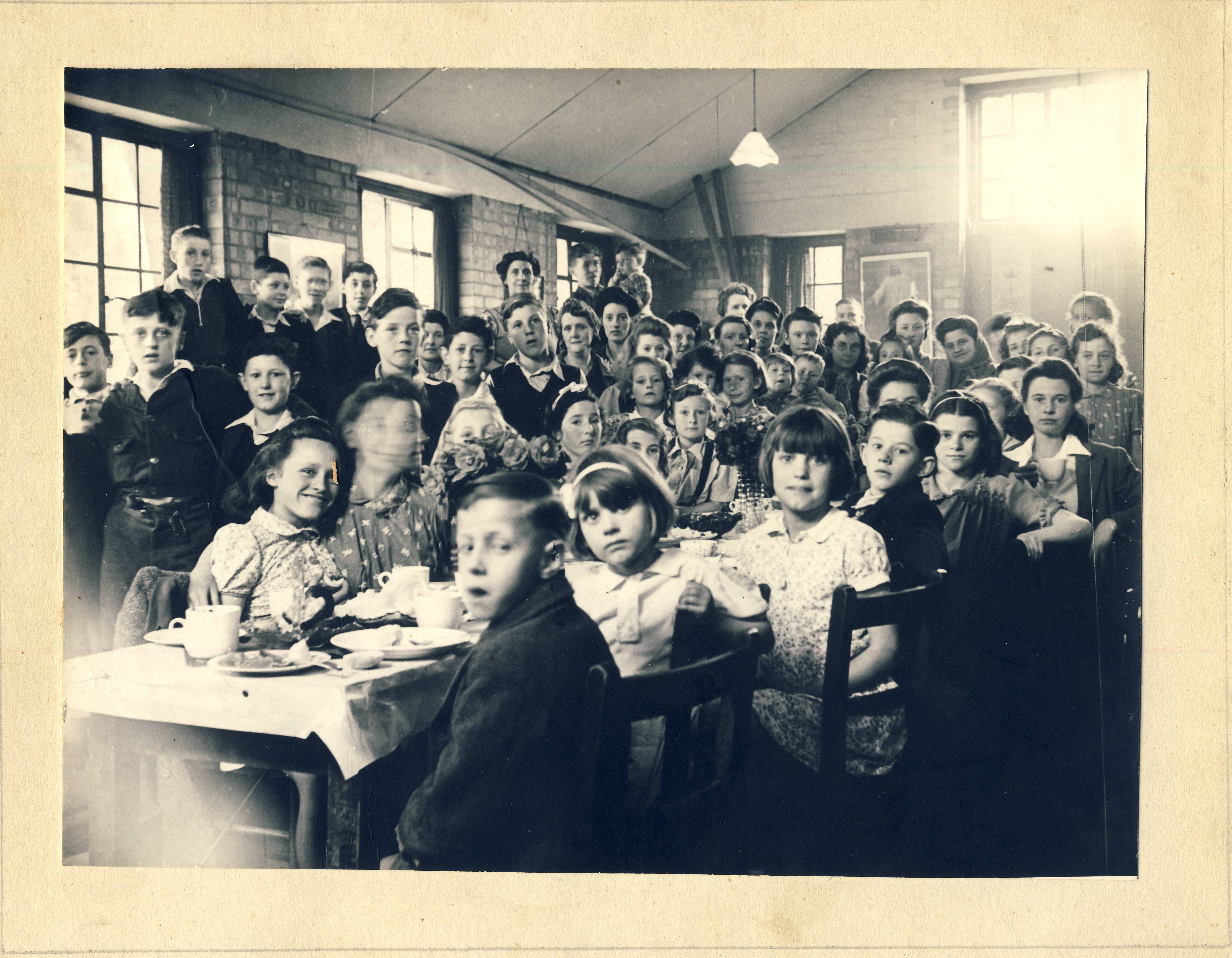 A children’s party, possibly photographed in the Welcome Hall, in the 1950s by Phox Studios.
