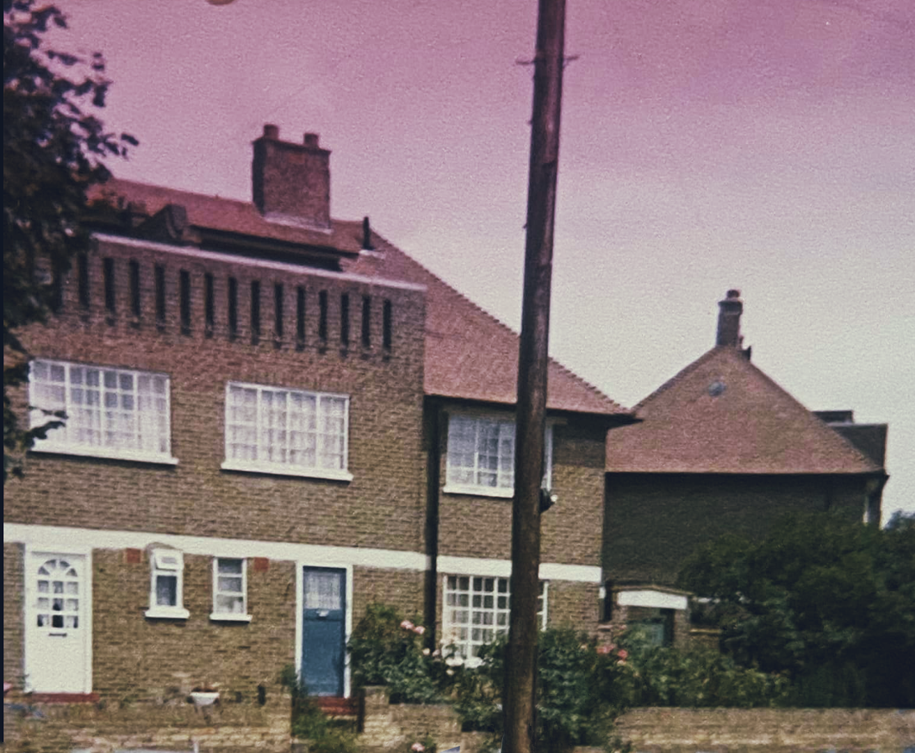 Crescent-shaped road off of Bond Road, Mitcham. The road is named after the “sunshine houses” that had an open air sleeping area for TB sufferers. This photo, as seen from the road, shows the walled area above the first floor. These areas were later converted to bedrooms.