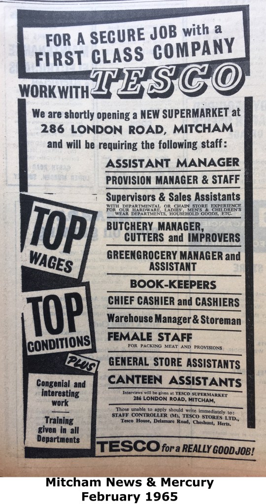 As with most women at the time, my mother, Dorothy, did not work during the 1950s and early 1960s , apart from a few hours on a Saturday afternoon in the tea bar at the local amateur football club, Tooting and Mitcham United in Sandy Lane. I believe that for each shift at the ground (probably 1.15pm- 4.15pm ) she was paid 7/6d. ( 37 1/2p ), which she considered to be her “ pin money “. I fondly remember, especially on cold afternoons, going in to the tea bar, with my good friend, Richard, to get a crafty free hot blackcurrant juice and, if lucky, a couple of Rich Tea or Ginger Nut biscuits. Later in the 1960s, my mother worked part-time in Pascall’s Sweet Factory and the Royal Arsenal Co-operative Society’s bakery, both factories in Streatham Road, and J F Renshaw and Co. Ltd., in Locks Lane. Fond memories of misshapen sweets from Pascall’s, hot bread from the RACS bakery and macaroons and, sometimes, petit fours from Renshaws. I also had a spell, as a “ Saturday boy “, cleaning the floors and ovens, in the RACS bakery in 1967/68. I recall that my first wage packet for an 8-hour day ( 8.00am – 4.00pm ) was 29/6d. ( £1-47 ½ p ) and being affronted to learn that I had to pay a few pence in National Insurance contributions. My wages were collected from the Pay Office where, just a few years earlier, in 1962, an RACS employee had been shot and killed in an armed robbery ( George Thatcher was convicted of murder and sentenced to hang but this was commuted to life imprisonment and he served 18 years in prison ). None of the factories where my mother and I worked survived to the present day.