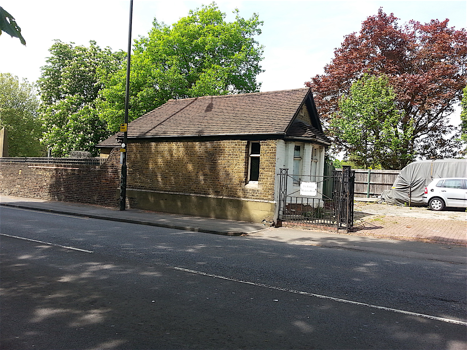 This is a small single storey detached Lodge, which dates from around 1870. The Lodge forms part of the original wall which surround the grounds of the Canons House, and it marks the point where the original entrance to the grounds once stood. The Lodge faces towards the original entrance drive, (with a projecting bay window) while it displays an almost blank wall to the main road. The building materials use include stock brick, (in part painted over), and roof tiles. The design of the building does not relate to that of any others in the vicinity. The main features of interest relate to the orientation of the building, and to its function as a Lodge for the Canons. No subsequent changes are evident.