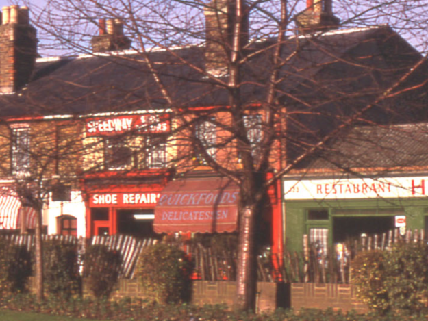 Delicatessen that was at 4 Upper Green West, Mitcham. Seen in this 1972 Eric Montague photo as between Speedway Shoe Repairs and Hutton’s fish shop.