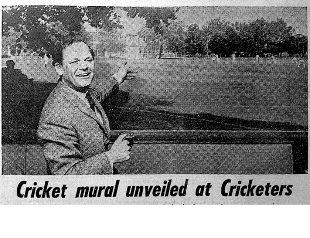 UNVEILING a new wall mural at The Cricketers Public House, Mitcham, on Tuesday, Mr. John Young, chairman of Young’s Brewery, said that the pub and the Cricket Green opposite had been connected with the sport for well over 200 years.